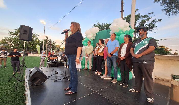 El martes 2 de diciembre quedó inaugurada la cancha de césped sintético del Club Social y Deportivo Primavera, ubicada en Av. Dr. Carlos Nery y Jaén, un avance significativo en la mejora de la infraestructura deportiva del territorio. La actividad contó con la presencia de la alcaldesa Matilde Palermo, integrantes del Concejo Municipal, representantes de la institución y autoridades nacionales. Niñas, niños y jóvenes participaron de la apertura, dando inicio a una etapa que ampliará las posibilidades de práctica deportiva en un entorno adecuado y seguro.